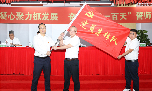 会上,8868体育临时党委副书记、高级副总裁谢斐宣读了公司临时党委成立党员先锋队和青年突击队的通知文件,在随后举行的授旗仪式上,来自一线的队员纷纷宣誓,要自觉履行使命当担,主动作为,达成目标,干出“不一样的精彩”,为“百日会战”献礼,不辜负组织的信任和重托。