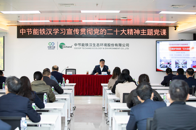 刘家强强调,学习宣传贯彻党的二十大精神,根本的出发点和落脚点在于指导实践、推动工作,要坚持学以致用,将学习成效转化为推动公司高质量发展的具体举措。一是以高质量党建引领高质量发展,实现党建与生产经营融合发展,助力公司经营发展和效益提升。二是主动服务国家生态文明建设战略部署,深入分析国家宏观政策、行业发展趋势,主动出击寻找优质项目,不断提升服务能力。三是以高质量发展为指引打造扭亏为盈的典范,坚持“以增量解决存量问题”,积极探索混合所有制企业运营管理模式,在抢抓市场、机构改革、降本增效、清欠回款等方面持续用力。四是着力打造高素质干部和人才队伍,为推动企业发展提供坚实保障。五是深化推进从严治党治企,以全面从严治党引领保障公司高质量发展。