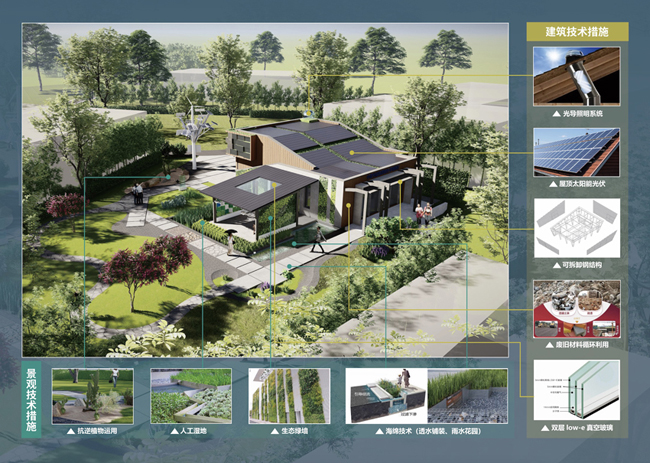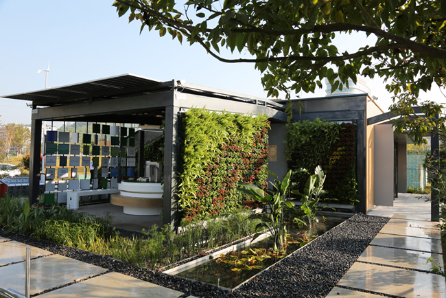 展区“含绿量”满满,运用低碳设计手法,采用低碳环保材料、低影响工艺、固碳植物、低碳能源、雨水综合利用技术等,营造智慧之树、咫尺山林、雨水花园、沙漠绿洲、草坪空间、生态绿墙等特色空间,同时设置智慧座椅、智慧路灯、风能互动设施等,打造人与自然和谐共生的低碳体验场域。