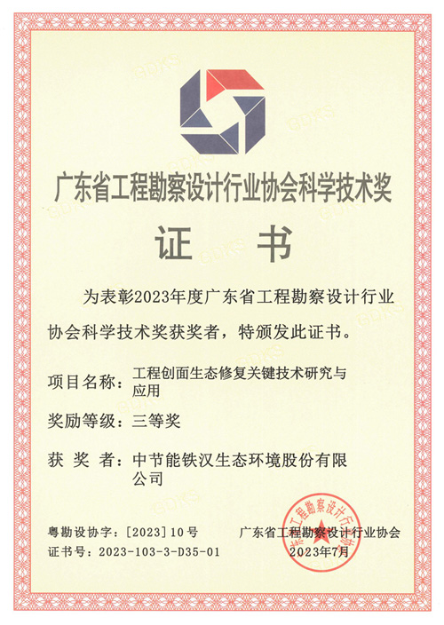 喜报 | 8868体育一项生态修复技术获2023年度广东省勘察设计行业协会科学技术奖三等奖