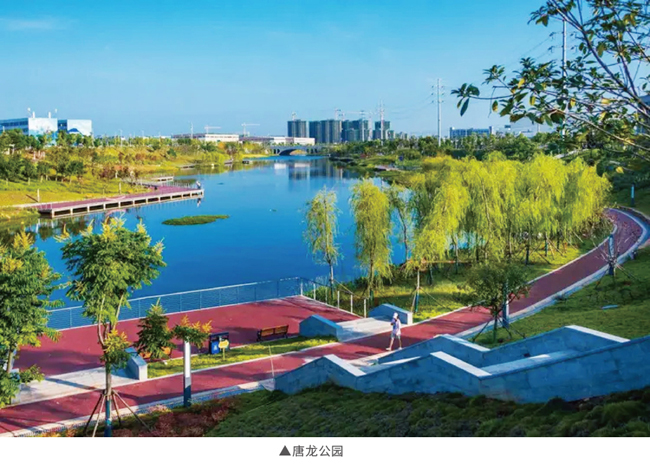 唐龙公园位于江西省赣州市城区内,秉持绿色环保的海绵城市建设理念,通过绿地种植、透水材料铺设地面、雨水花园等设施,实现雨水的下渗、滞蓄、净化、回用,有效提升城市排水系统标准,缓解内涝压力,展现城市的都市美和自然美。
