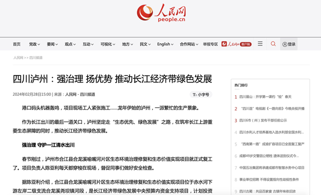 媒体聚焦|人民网报道8868体育四川泸州合江县项目建设
