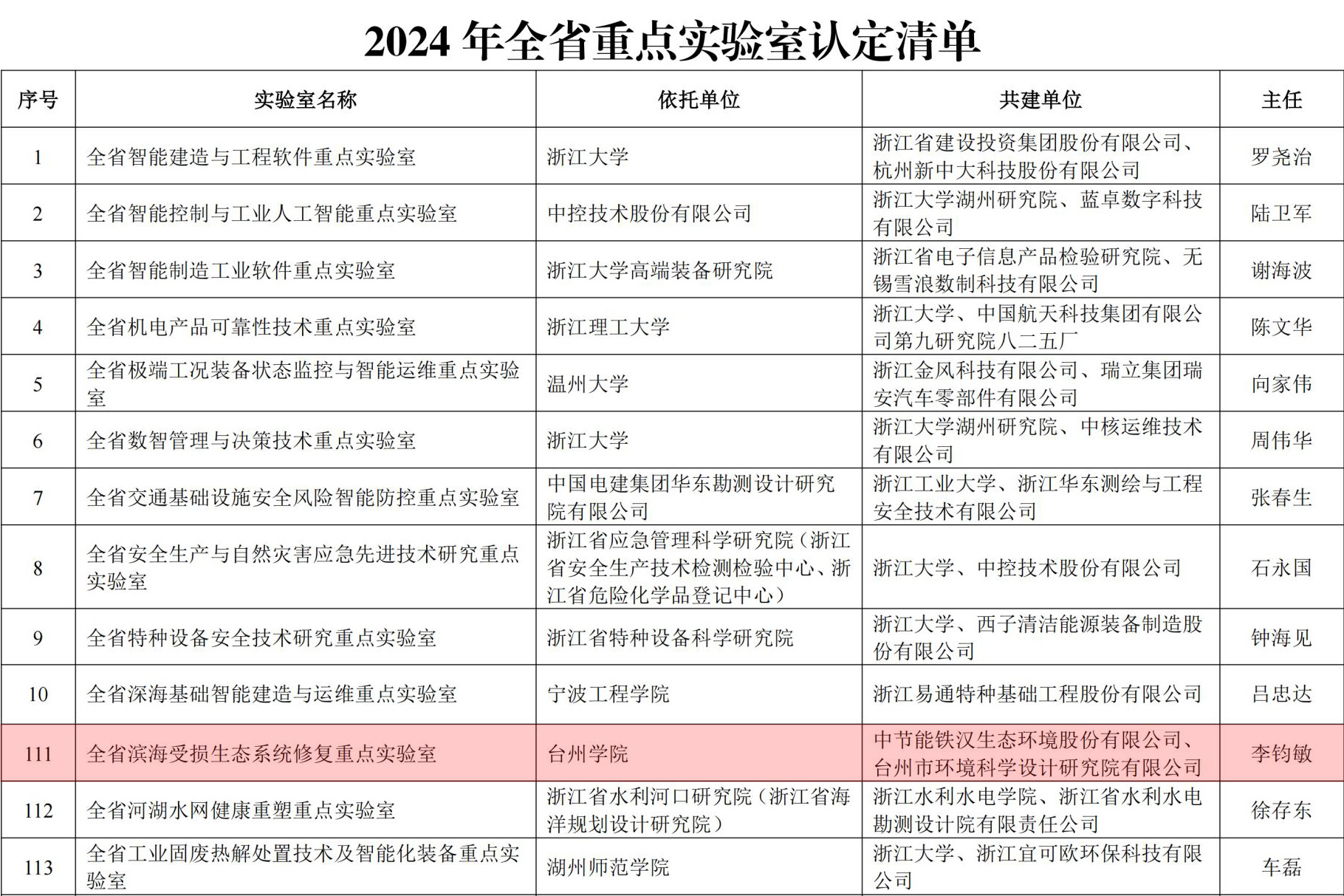 近日,8868 - 看球聊球追世界杯就来8868体育有限公司官方网站与台州学院、台州市环境科学设计研究院有限公司共同申报的“全省滨海受损生态系统修复重点实验室”通过浙江省科学技术厅认定,成为浙江省首个滨海生态修复实验室。