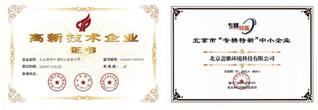 作为国家级高新技术企业、“北京市专精特新”中小企业,盖雅环境已获得授权专利33项,拥有丰富的水处理工程经验和完备的环境领域技术体系,具有强大的技术研发和创新能力。主要业务范围涵盖工业废水及市政污水处理、工业给水及中水回用、农村饮用水、清洁生产及废弃物资源化、环保材料及装备制造等方面,凭借对不同污染治理需求及环保问题系统性综合解决方案能力,能够为客户提供技术开发、咨询设计、工程建设、核心设备制造、升级改造及运营服务等覆盖全产业链的一体化优质服务。