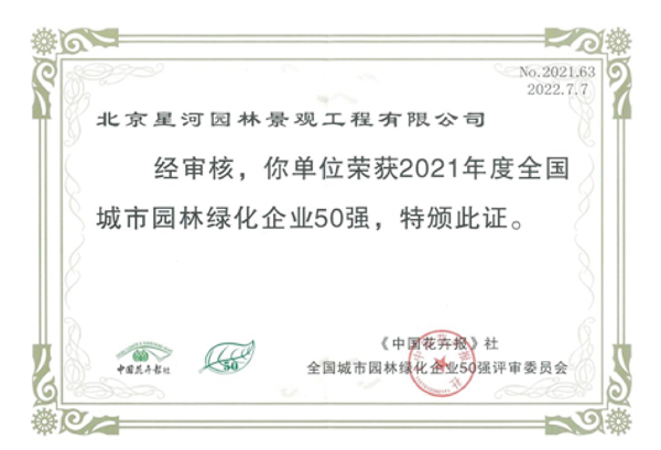 喜报 | 铁汉星河蝉联全国城市园林绿化企业50强