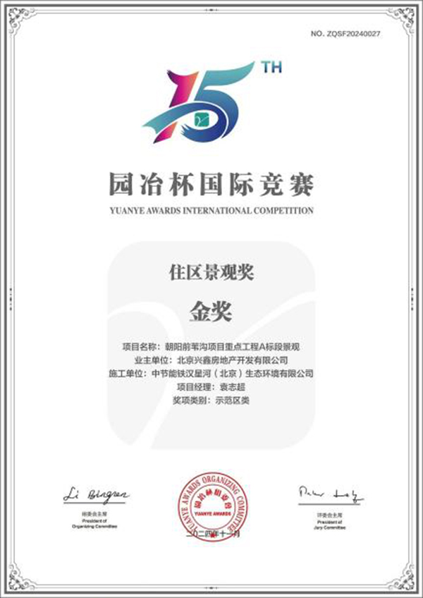 近日,第十五届园冶杯国际竞赛评审结果出炉,8868体育所属铁汉星河承建的朝阳前苇沟项目重点工程A标段景观项目(中建璞园示范区)获得住区景观奖示范区类金奖。